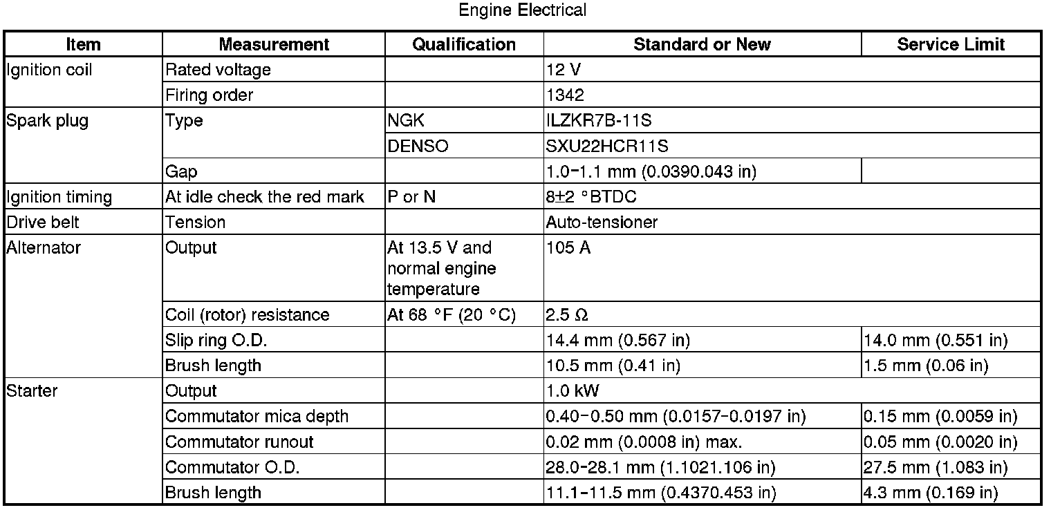 Standards and Service Limits (KA, KC Models)