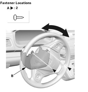 1. Turn the steering wheel to the left. Remove the screw (A) securing the lower column cover (B) from the front side.