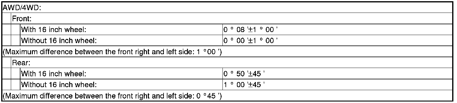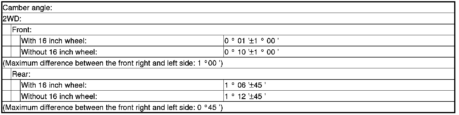 * If the measurement for the rear camber is not within the specification, check for bent or damaged suspension components.