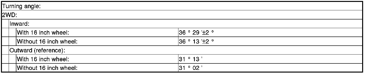 3. If it is correct, but the turning angle is not within the specifications, check for bent or damaged suspension components.