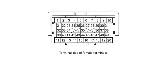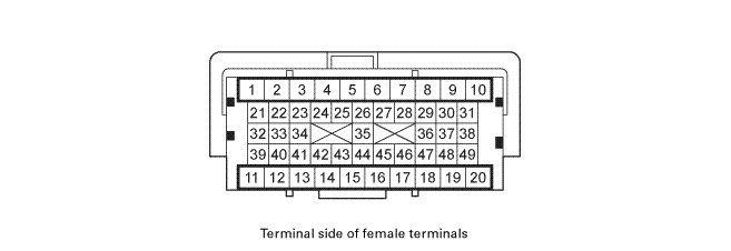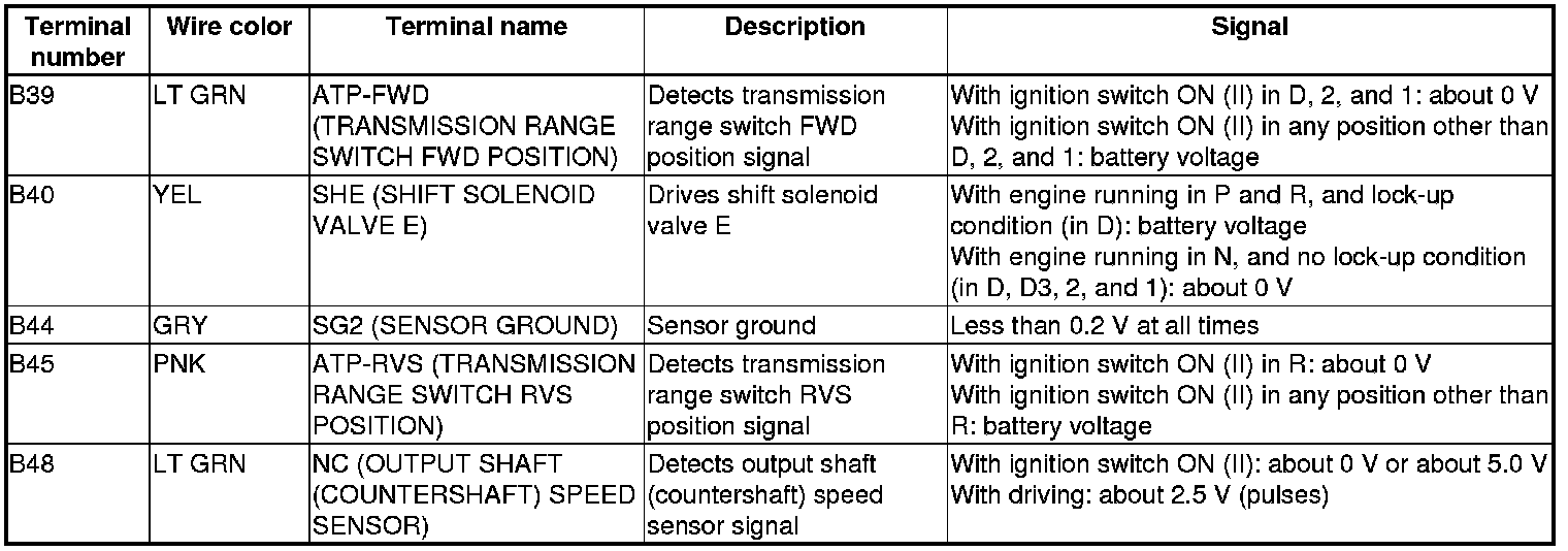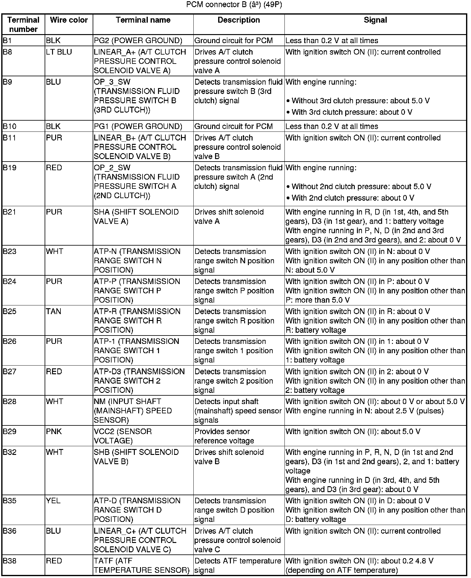 PCM A/T Control System Inputs and Outputs at PCM connector B (triangle) (49P)