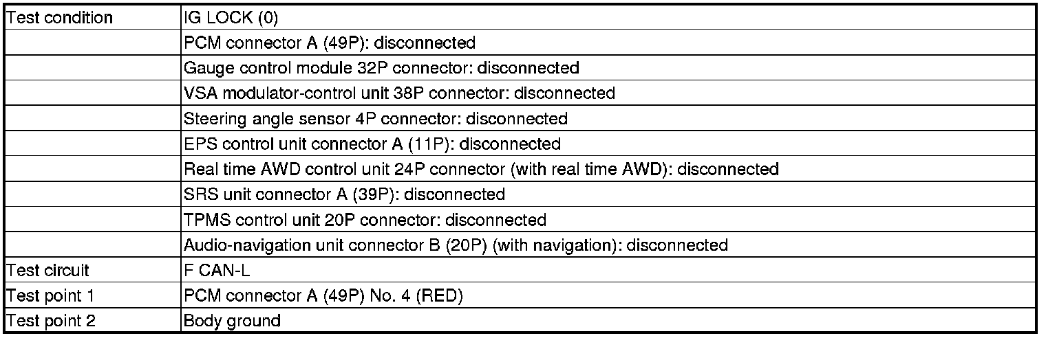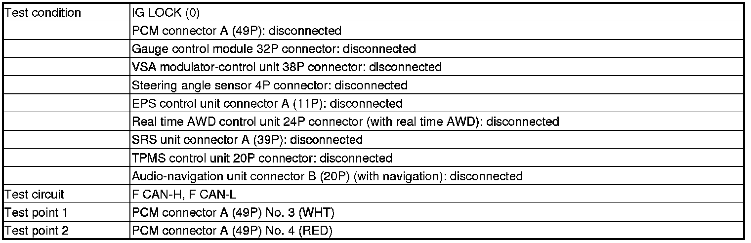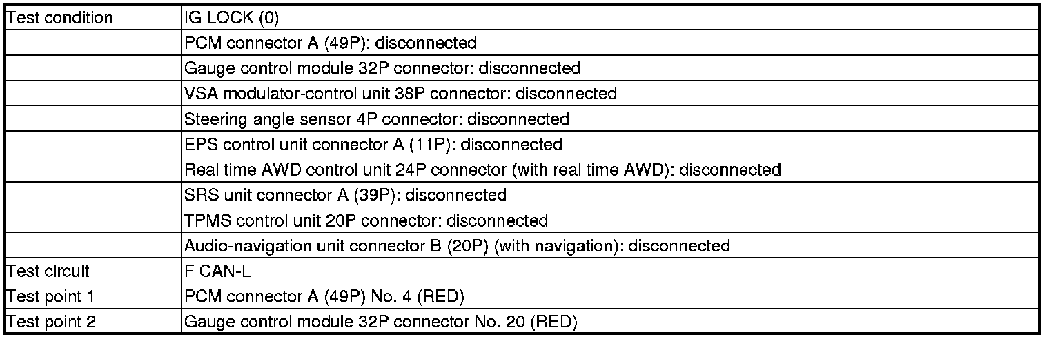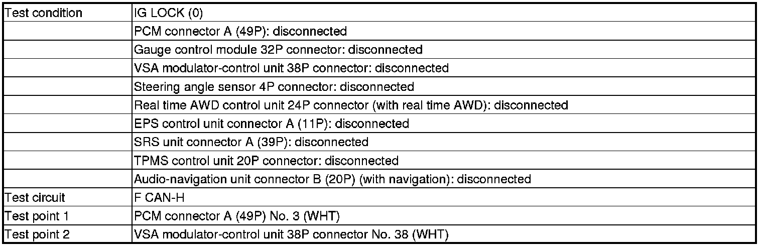 -YES- Repair a short in the F CAN-H wire between PCM (A3) and the gauge control module, the VSA modulator-control unit, the steering angle sensor, the EPS control unit, the real time AWD control unit, the SRS unit, the TPMS control unit, the navigation unit, or the DLC.