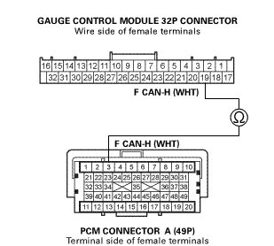 -NO- Repair an open in the F CAN-H wire between the PCM (A3) and the gauge control module.