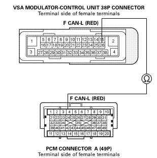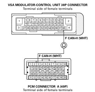 -NO- Repair an open in the F CAN-L wire between the PCM (A4) and the VSA modulator-control unit.
