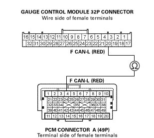 -NO- Repair an open in the F CAN-L wire between the PCM (A4) and the gauge control module.