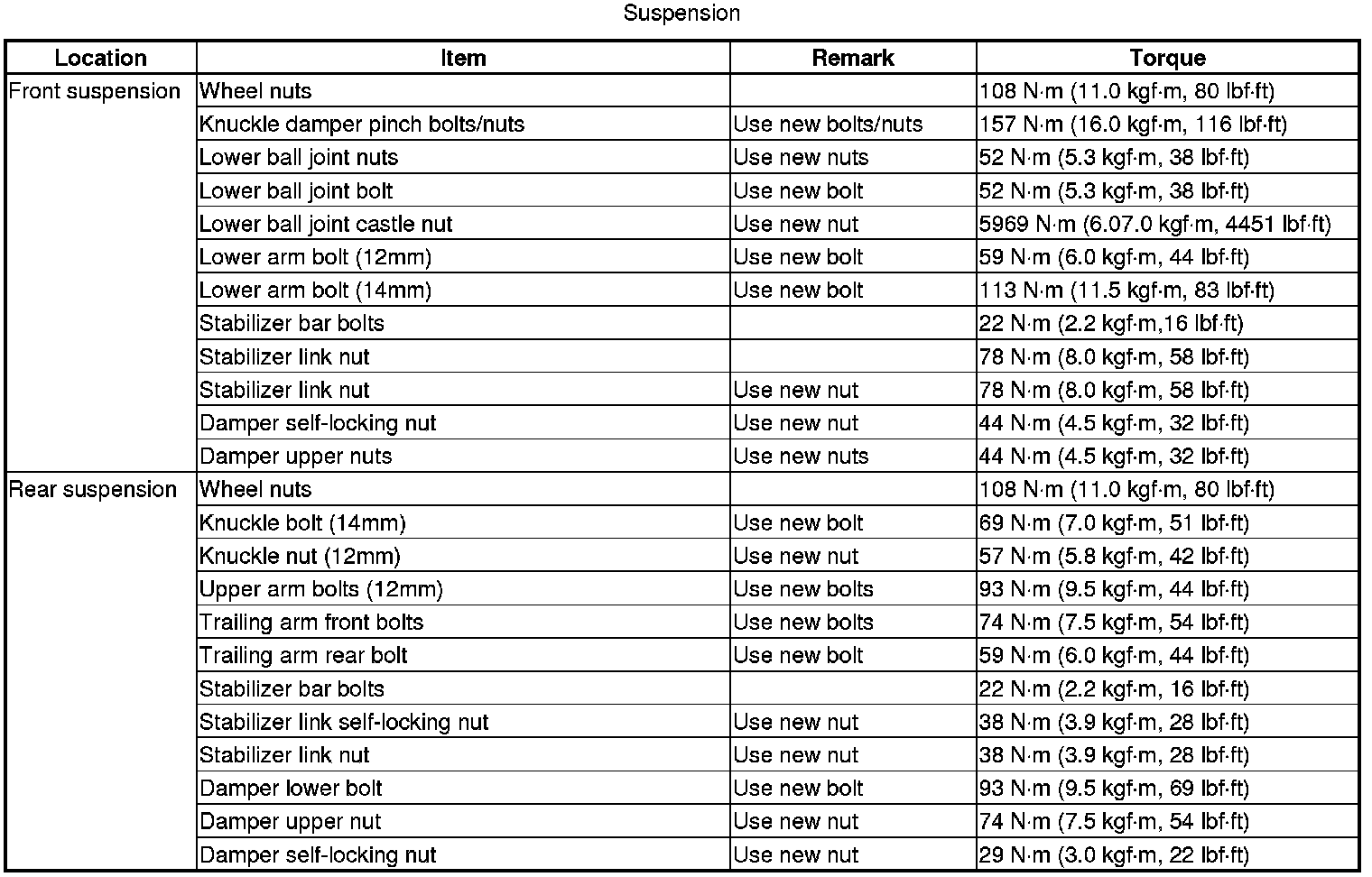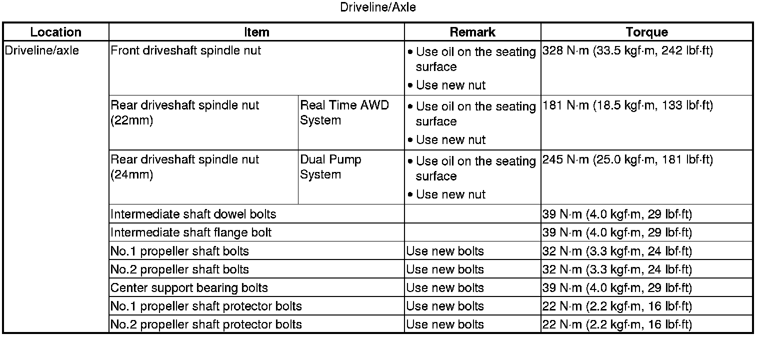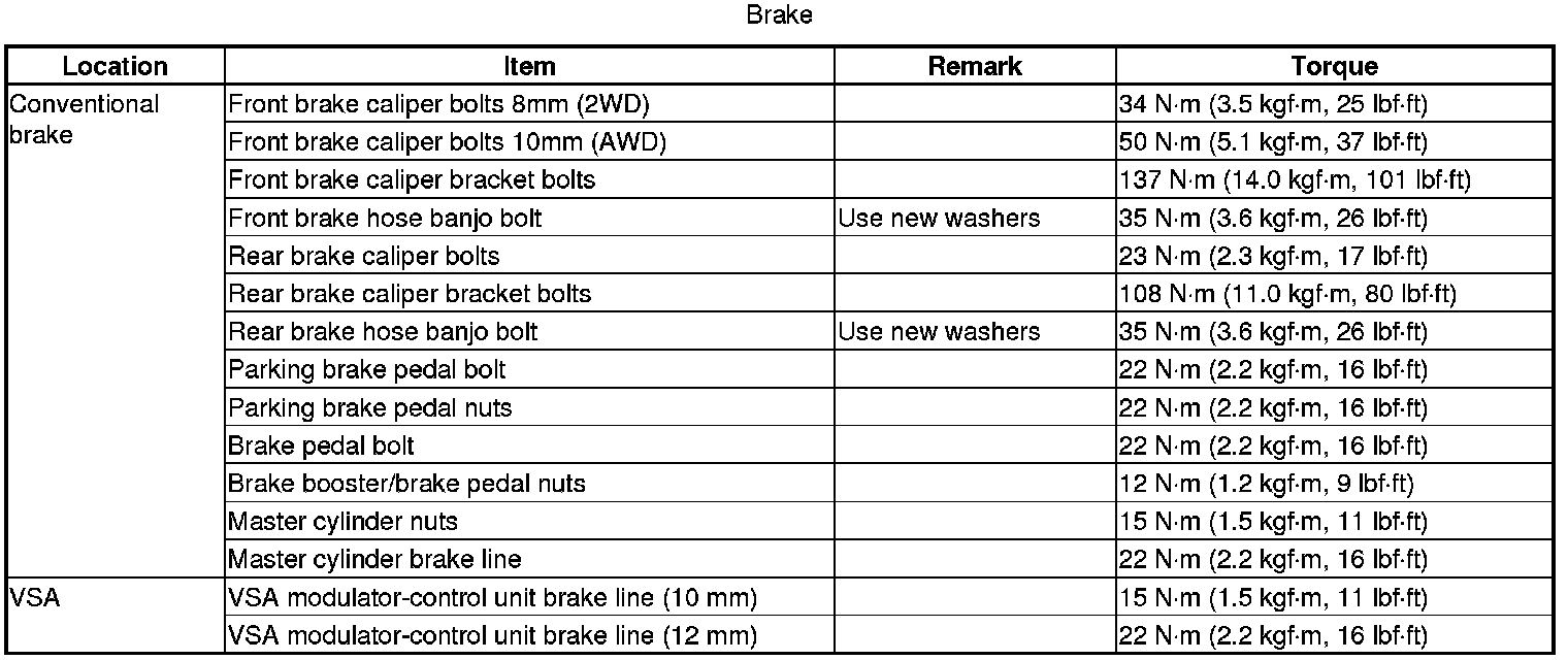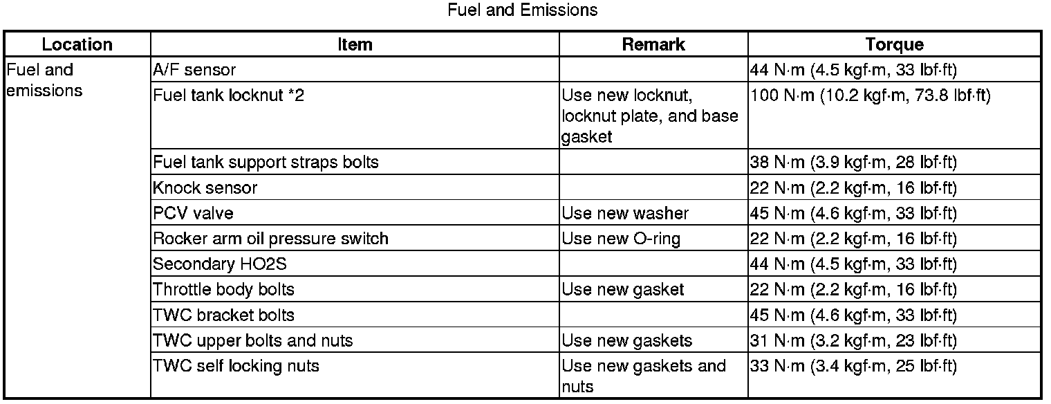 Torque Specifications