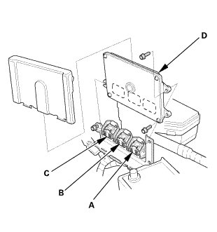 NOTE: PCM connectors A, B, and C have symbols (A=(square), B=(triangle), C=(circle)) embossed on them for identification.