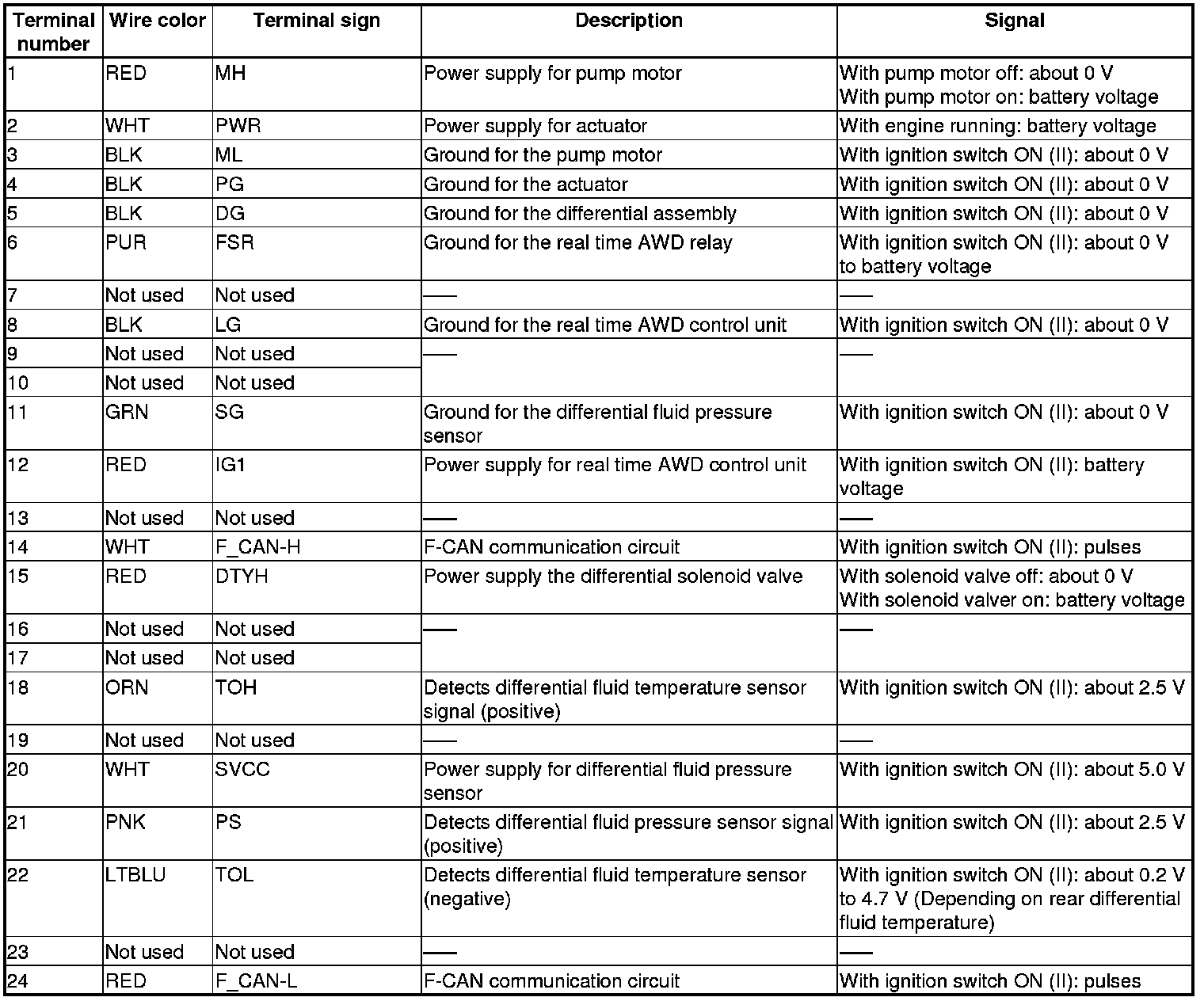 Inputs and Outputs for 24P Connector (Connector Disconnected)