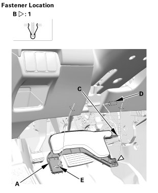 2. Pull away the undercover to release the pin (D) from the holder (E), then remove the driver's dashboard undercover.
