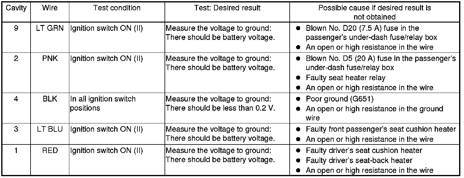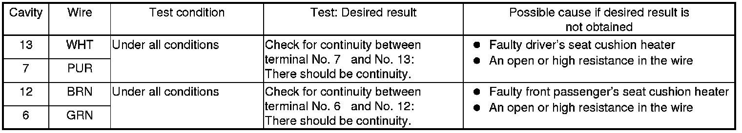 Seat Heater Control Unit Input Test/Replacement