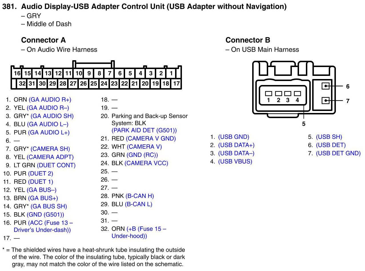 View 381 - Audio Display-USB Adapter Control Unit Connector View (USB Adapter without Navigation)