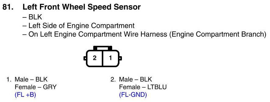 View 81 - Left Front Wheel Speed Sensor Connector View
