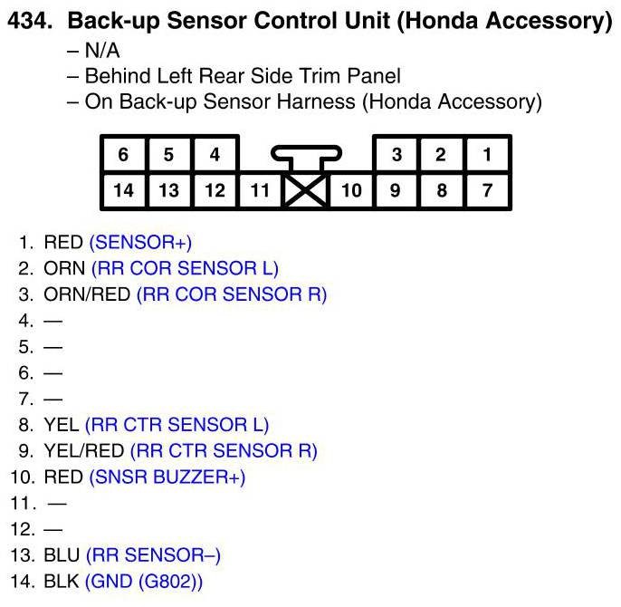 Back-Up Sensor Control Unit Connector View (Honda Accessory)