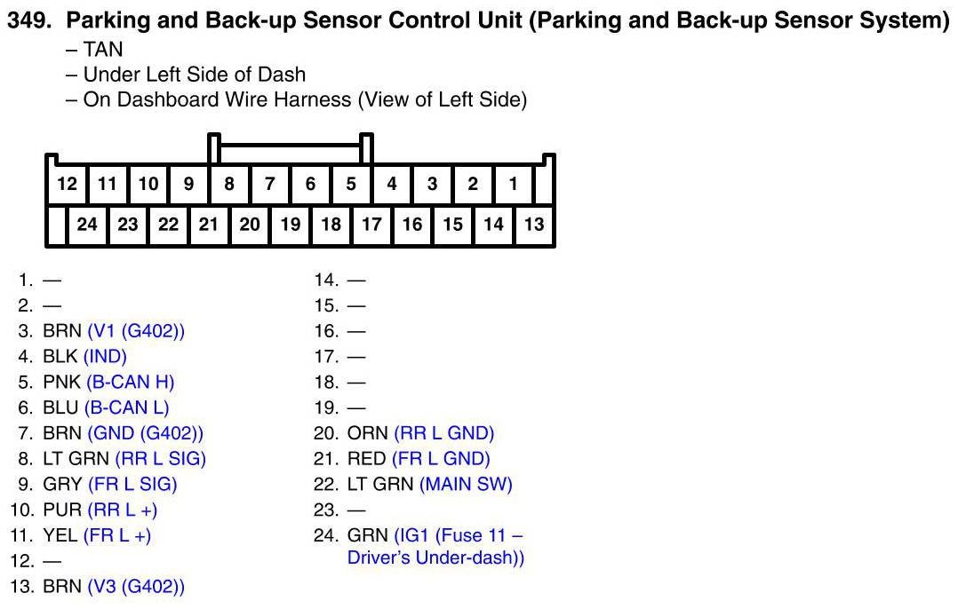 Parking and Back-Up Sensor Control Unit Connector View (Parking and Back-Up Sensor System)