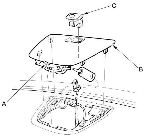 2. Remove the sunlight sensor (C) from the front center speaker grille.
