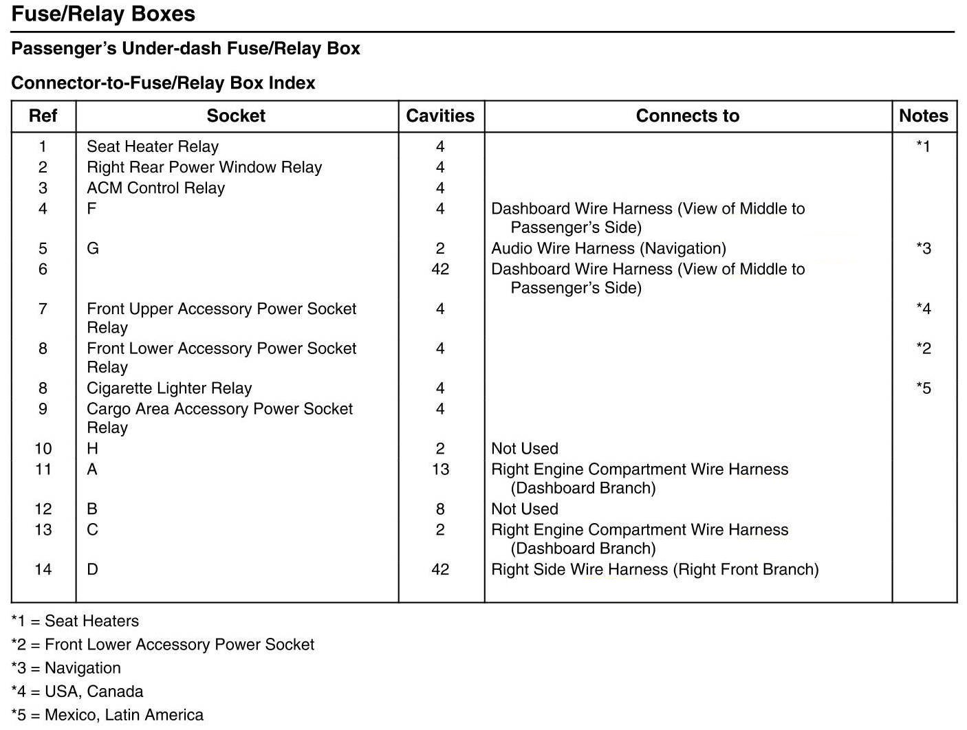Passenger's Under-dash Fuse/Relay Box - Connector-to-Fuse/Relay Box Index