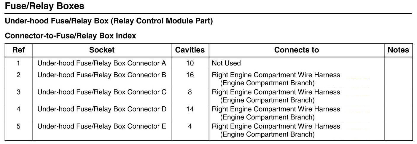 Under-hood Fuse/Relay Box (Relay Control Module Part) - Connector-To-Fuse/Relay Box Index