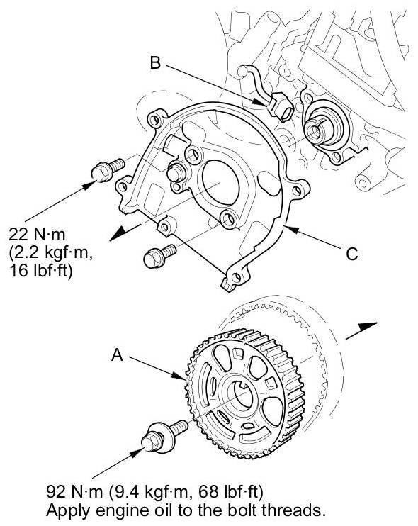 3. Disconnect the CMP sensor connector (B), then remove the back cover (C).