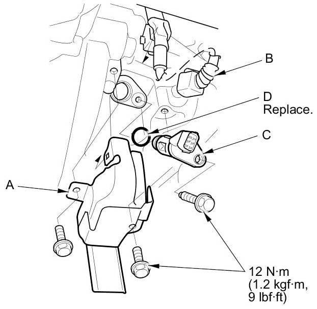 5. Install the parts in the reverse order of removal with a new O-ring (D).