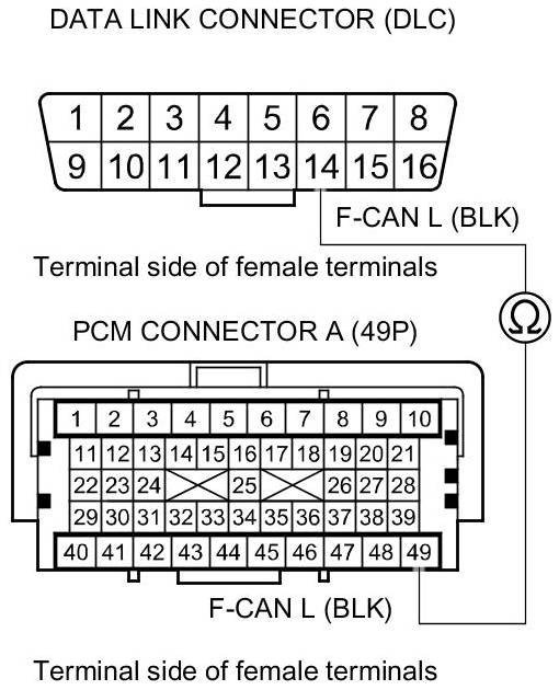 Repair an open in the wire between the PCM (A49) and DLC terminal No. 14.