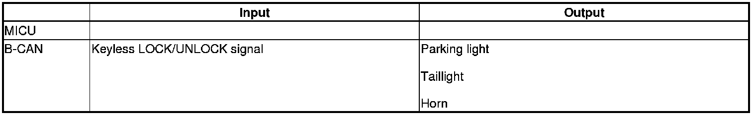 The MICU controls the lighting system and horns based on keyless signals sent by B-CAN.