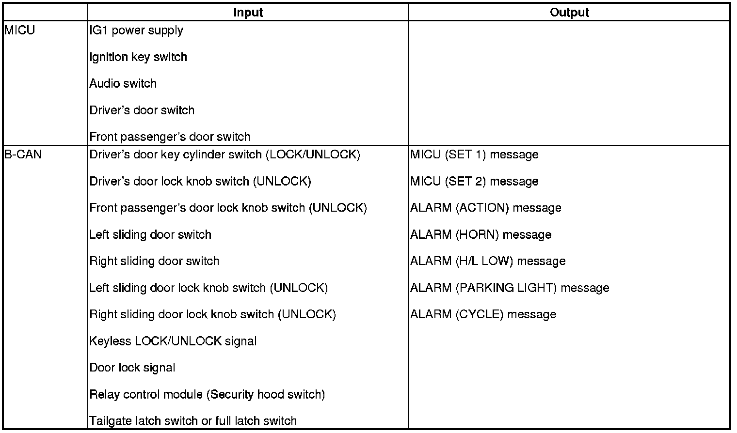 When any of the data from the B-CAN circuit cannot be received within a specified time, or an unusual combination of data is recognized, the MICUs move to the software fail-safe mode. The data that cannot be received is forced to a pre-programmed value.