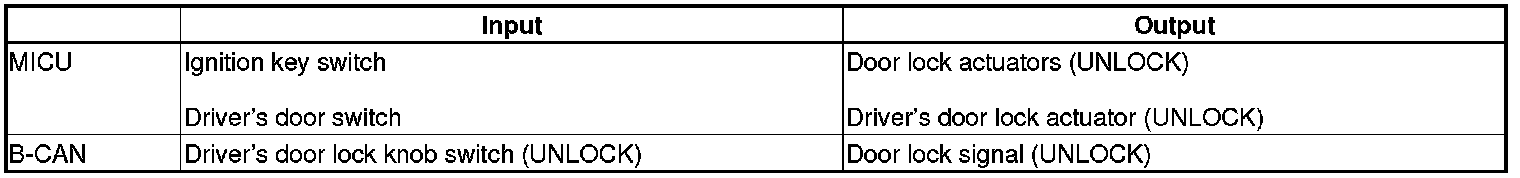 The MICU controls the door lock actuators based on door lock signal sent by B-CAN data.