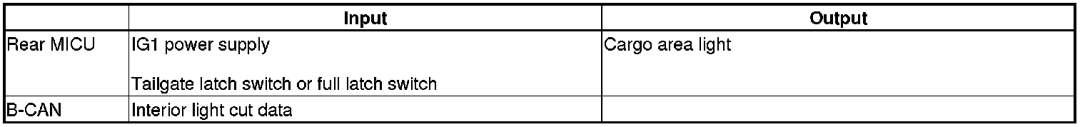 The rear MICU controls the cargo area light based on inputs from each switch and B-CAN data.