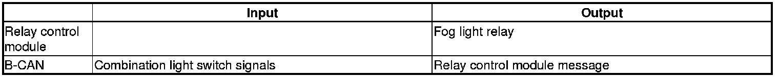 The relay control module controls the fog lights based on combination light switch inputs sent by B-CAN data.