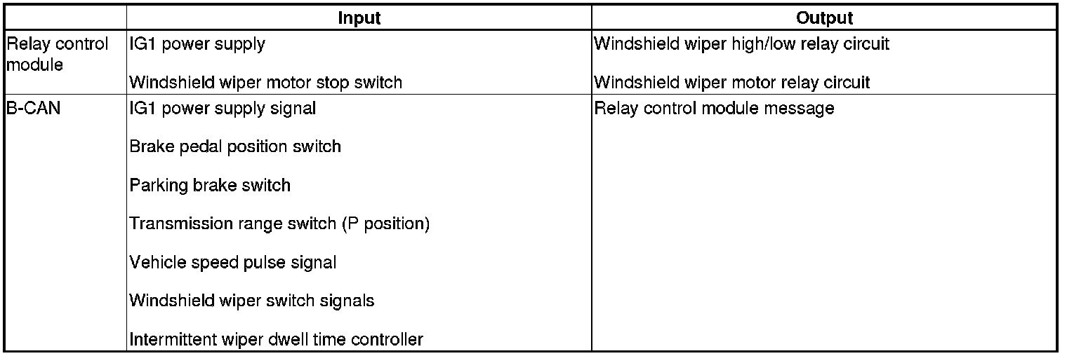 The relay control module controls the windshield wiper based on inputs from each switch and B-CAN data.