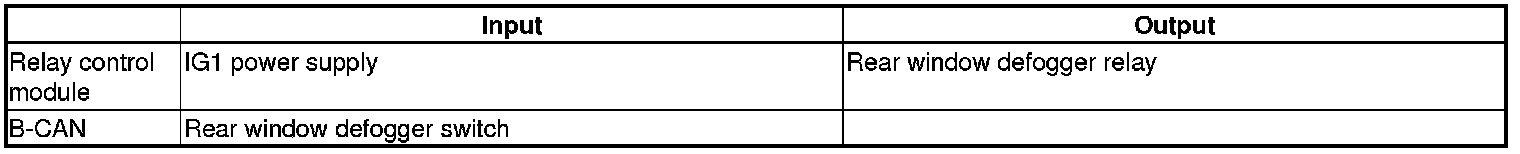 The relay control module controls the rear window defogger based on inputs from the ignition switch (IG1) and B-CAN data.