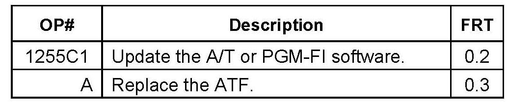 Update the A/T software or the PGM-FI software, then if the vehicle is customer owned or previously owned, replace the ATF.