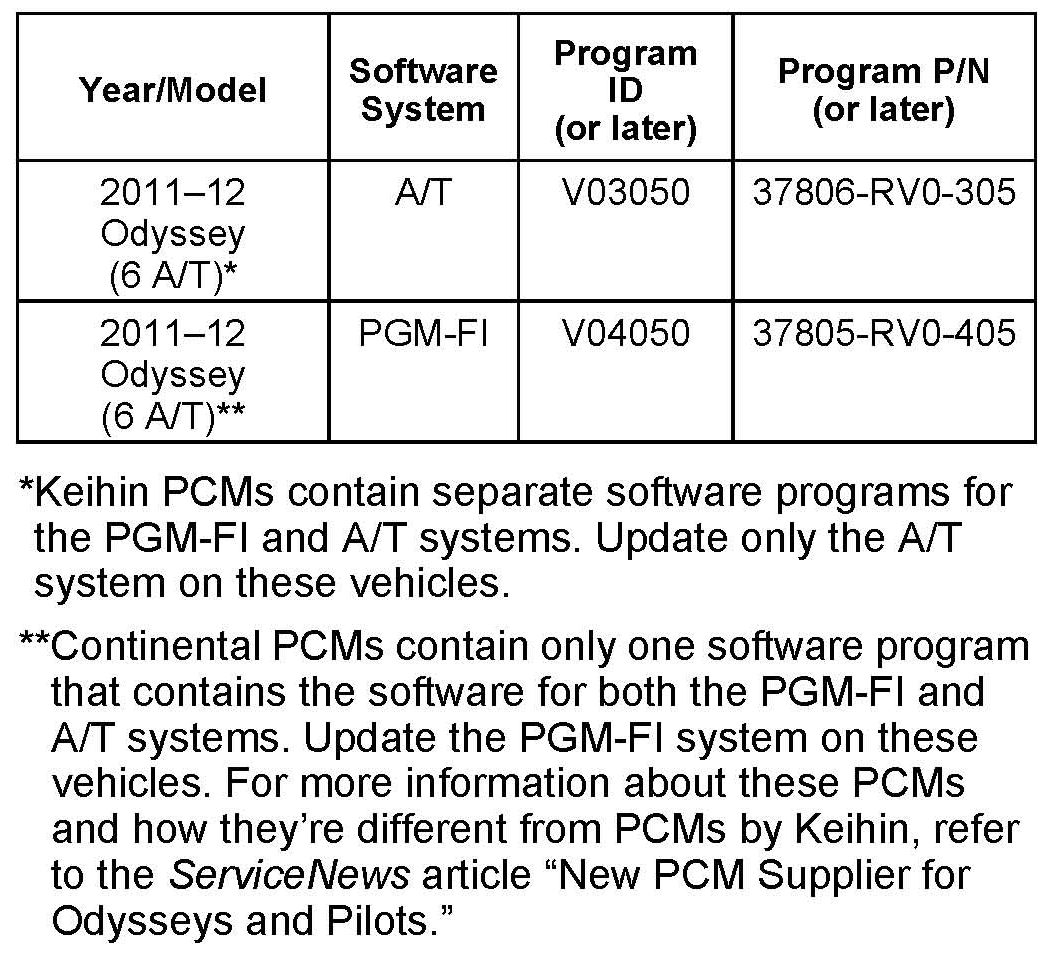 1. Update the PGM-FI or the A/T software. Refer to Service Bulletin 01-023, Updating Control Units/ Modules.