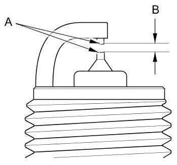 3. Replace the plug at the specified interval, or if the center electrode (A) is rounded, or if the spark plug gap (B) is out of specification, or if the spark plug electrode is dirty or contaminated. Use only the spark plugs listed.
