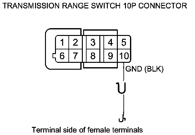 21. Check for continuity between transmission range switch 10P connector terminal No. 10 and body ground.