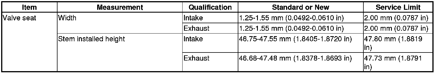 Valve Seat Specification(s)