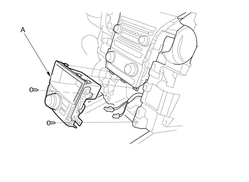 2. Remove the screws, then pull out the navigation switch panel and the center pocket (A).