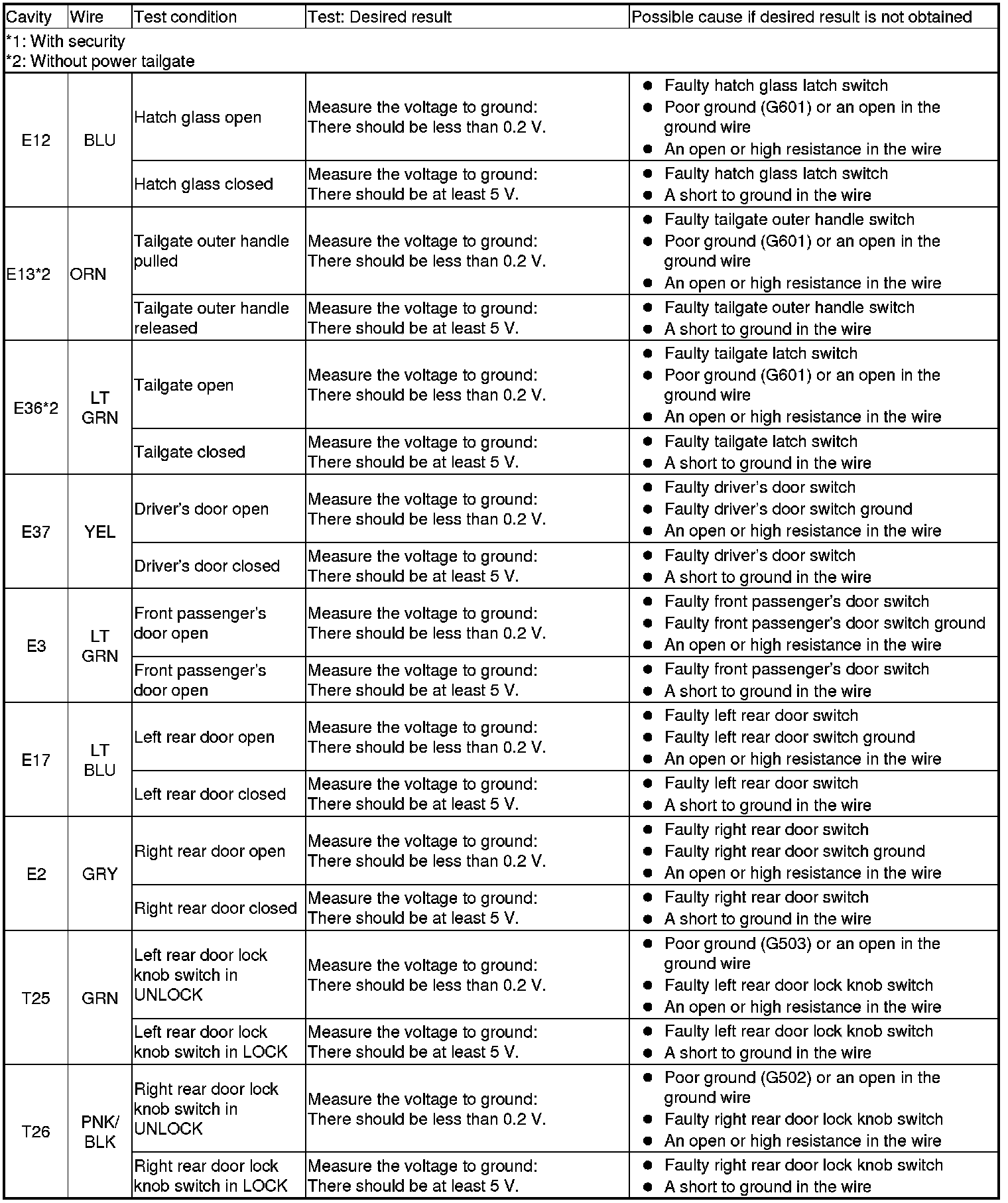 Keyless/Power Door Locks/Security System (MICU and Door Multiplex Control Unit) Input Test