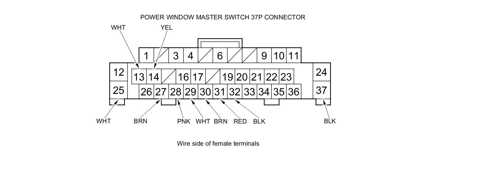 9. Disconnect the 37P connector from the power window master switch.