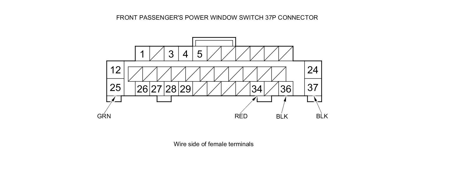15. Disconnect the 37P connector from the front passenger's power window switch.