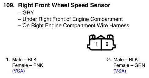View 109 - Right Front Wheel Speed Sensor Connector View