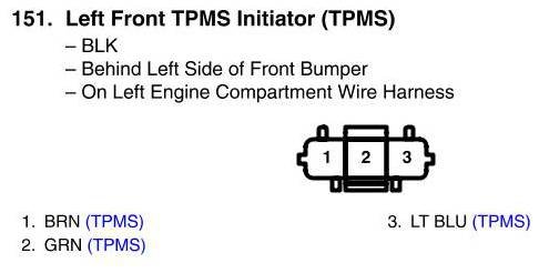 View 151 - Left Front TPMS Initiator Connector View (TPMS)