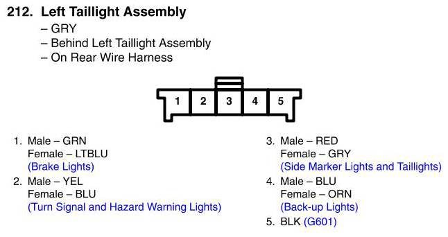 View 212 - Left Taillight Assembly Connector View