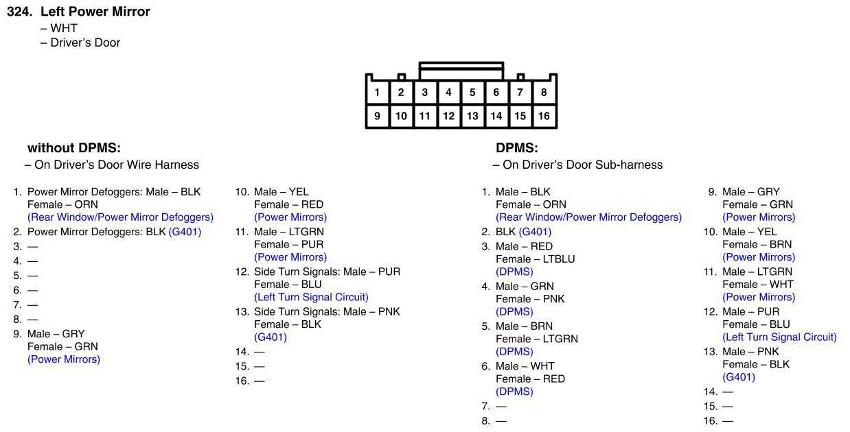 View 324 - Left Power Mirror Connector View