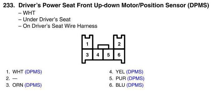 Driver's Power Seat Front Up-Down Motor/Position Sensor Connector View (DPMS)