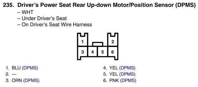 Driver's Power Seat Rear Up-Down Motor/Position Sensor Connector View (DPMS)
