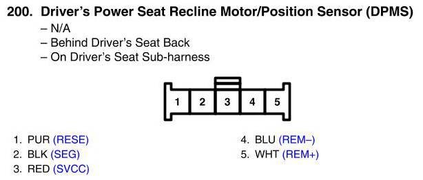Driver's Power Seat Recline Motor/Position Sensor Connector View (DPMS)