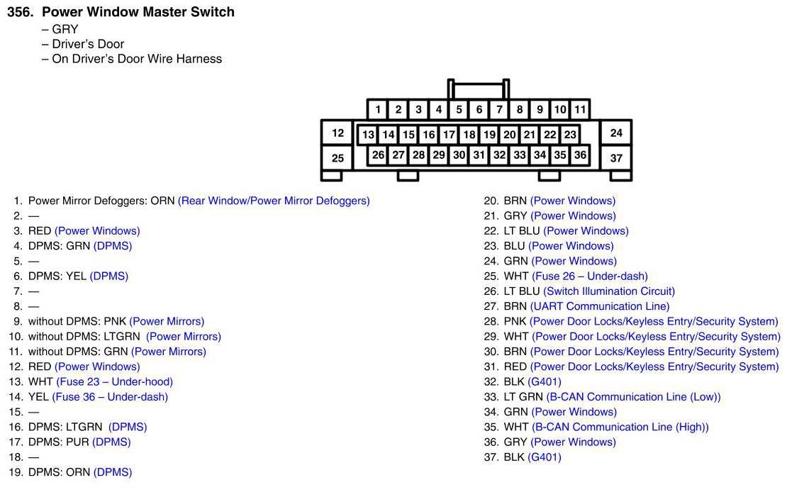 Power Window Master Switch Connector View