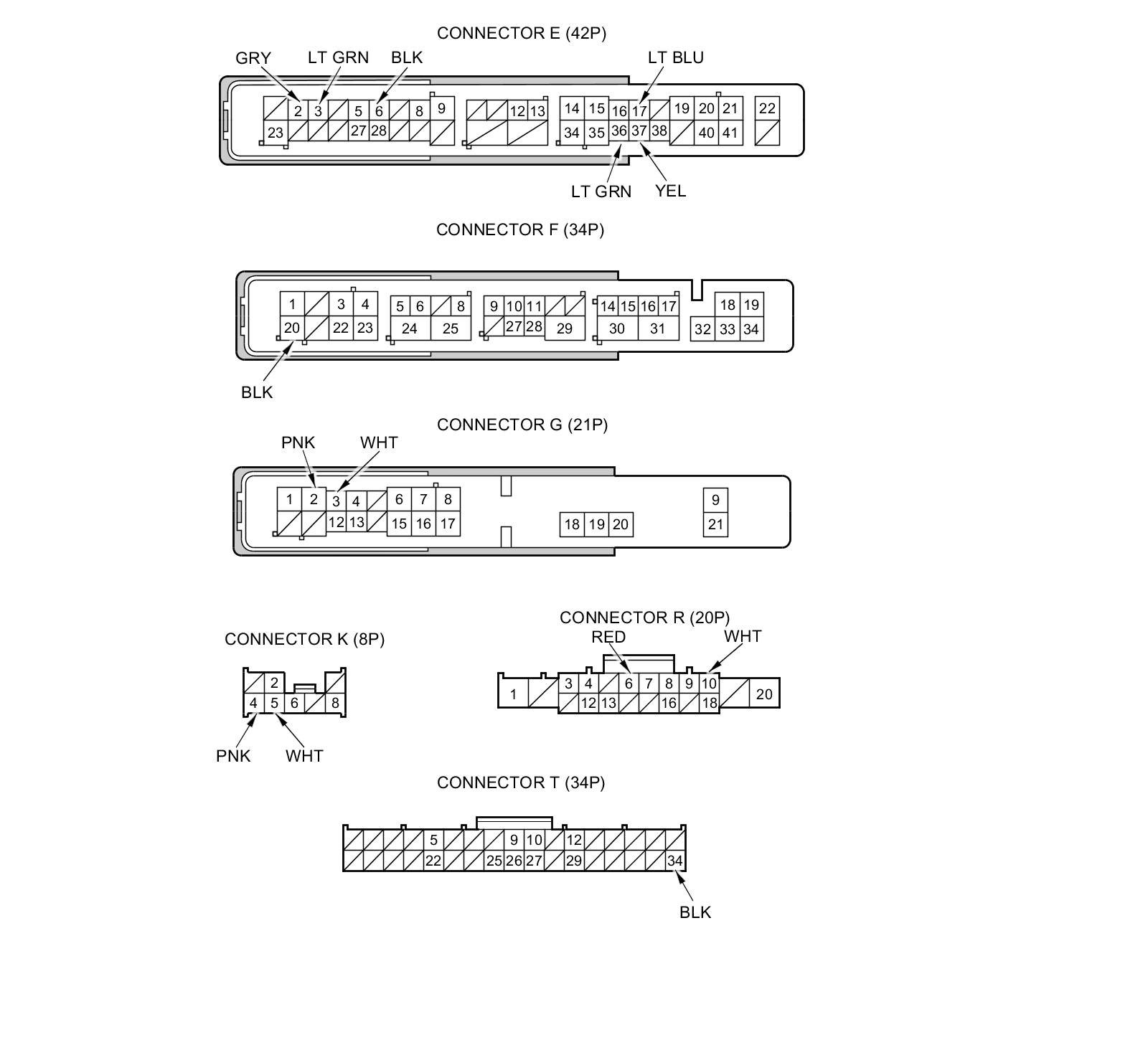 NOTE: All connector views are shown from the wire side of female terminals.