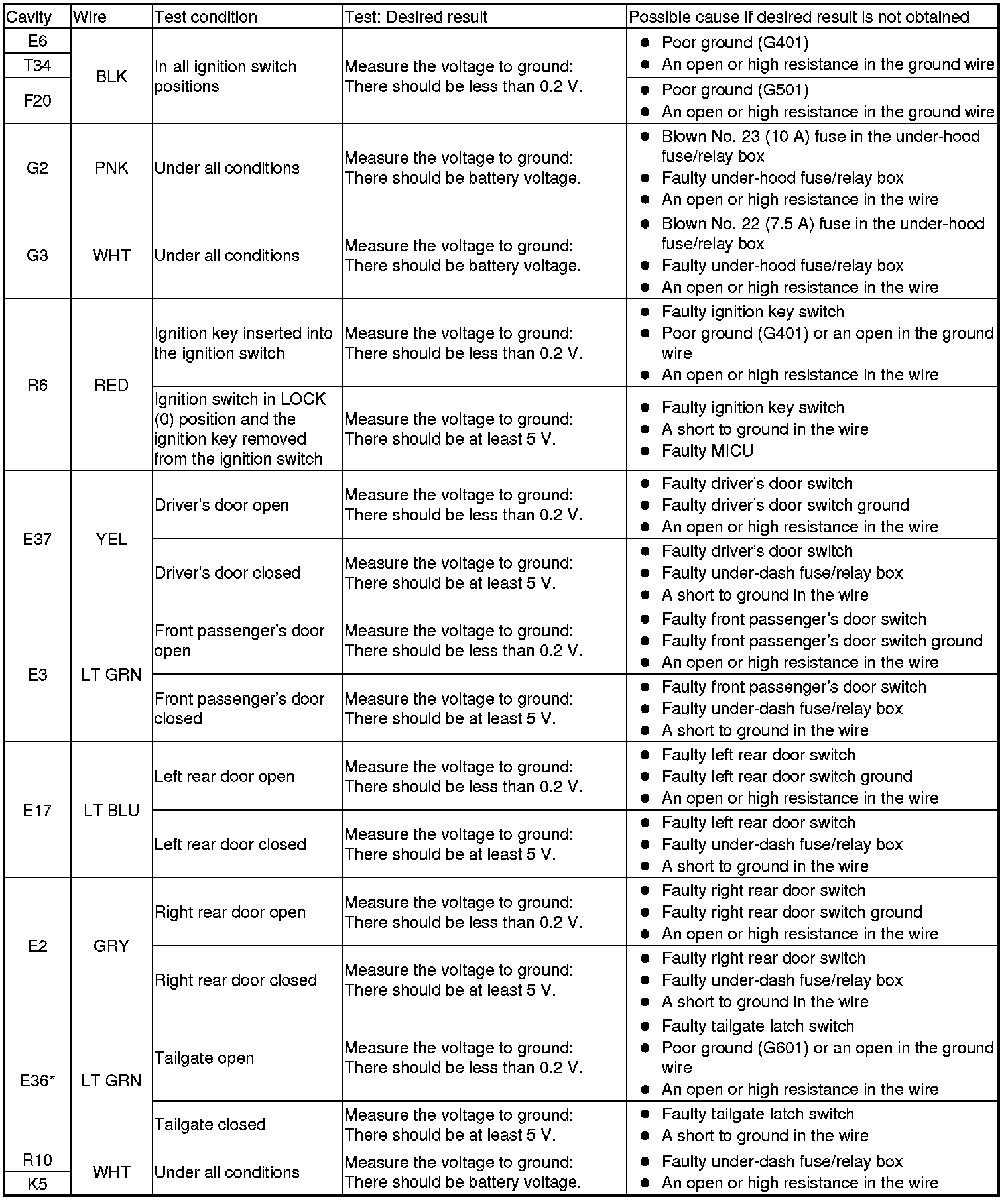 5. Reconnect the connectors to the under-dash fuse/relay box, and do the following input tests: